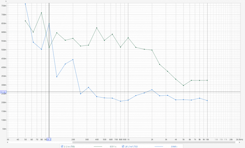 잔향 시간의 변화도 아주 좋게 변한 것을 볼 수 있습니다.