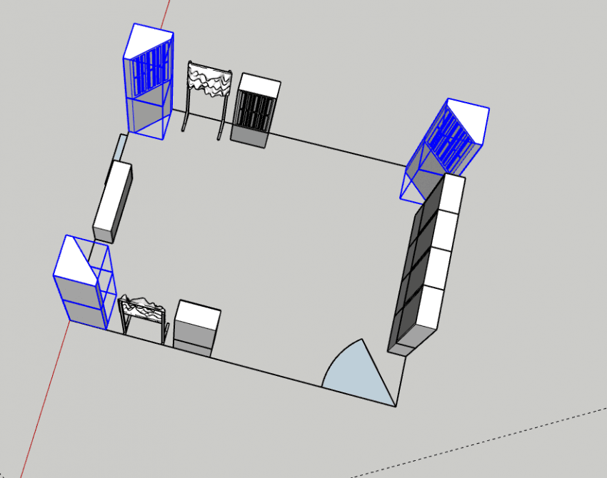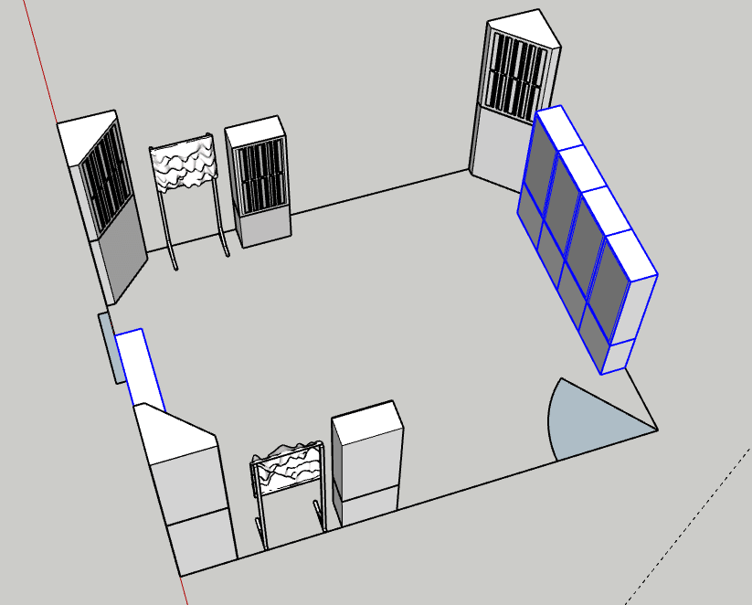 이번 공간에서 특기할 만한 점은 공간에 문이 2개가 있는 것 이었습니다. 좌측 상단은 주 출입로, 우측 하단은 창고로 가는 문이었습니다.