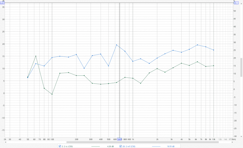 설치 이후 측정된 응답을 보면, 상당히 긍정적인 모습을 보여 주는 것을 알 수 있습니다. 보다 완만한 큐값으 딥 피크와, 좀 더 균형잡힌 응답을 볼 수 있습니다.