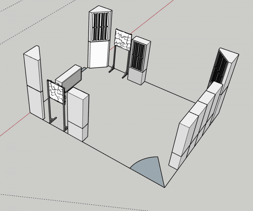 청취 위치 근처 벽을 커버하여, 좌우 방향 공진 감소가 일어나도록 배치 하였습니다.