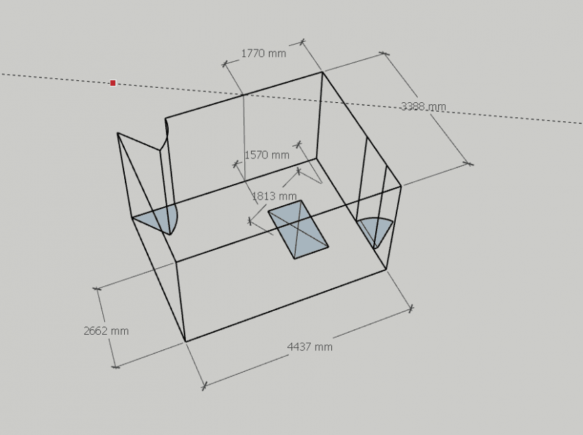 가로 3.88m 세로 4.43m 높이 2.66m 의 육면체 공간입니다.