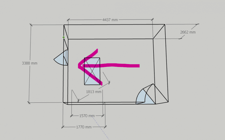 코너는 베이스트랩을 위치시키기 아주 중요한 위치입니다. 어쿠스틱퓨저에서도 스테디셀러 조합인 T trap M, 과 Ttrap 의 조합으로 출입구를 제외한 코너가 설치되었습니다.